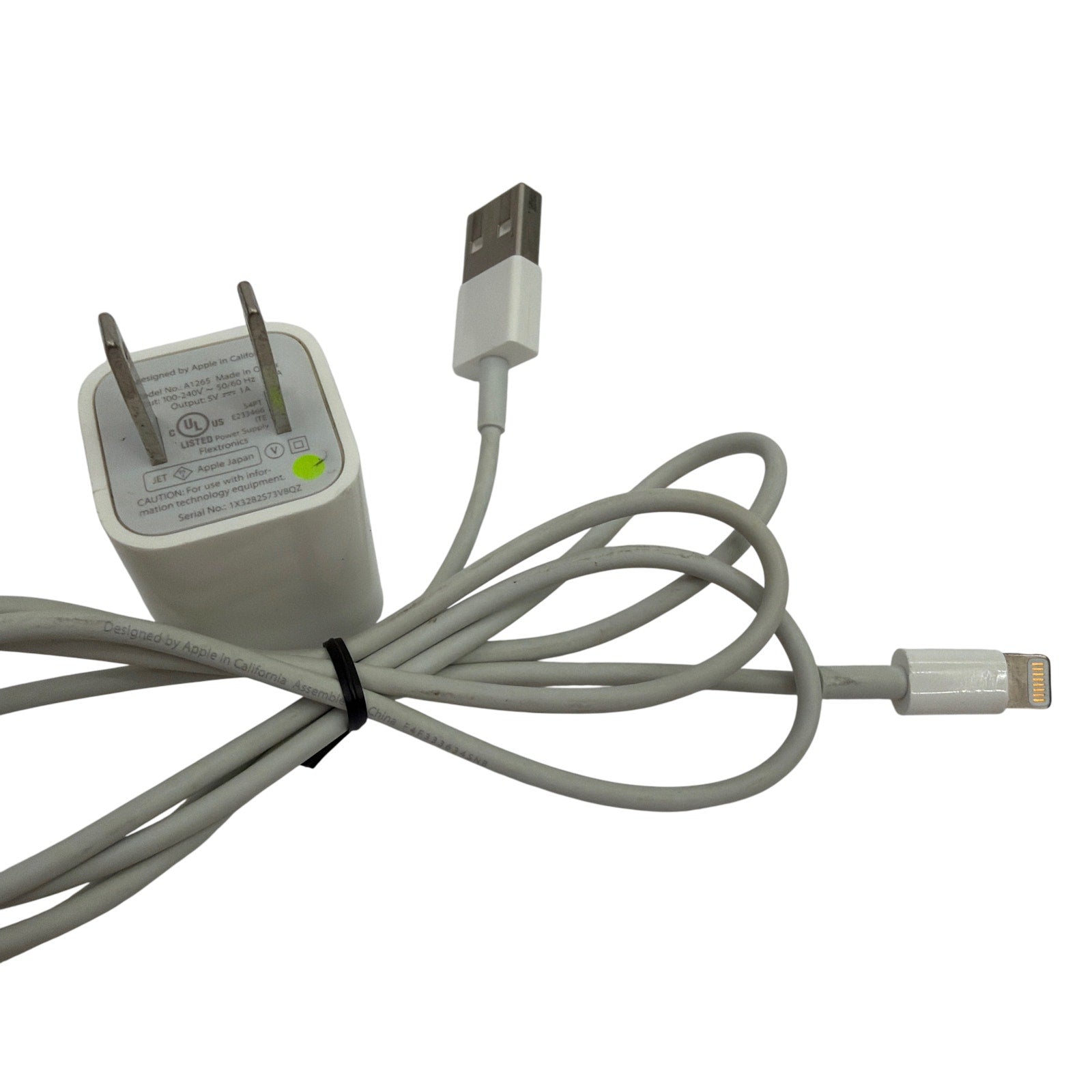 Apple Magic Keyboard (model A1644) in silver with white keys. One side is bent and there may be scuffs/marks from use. All buttons were tested and are working properly. Battery is not like new but holds a charge. Includes the keyboard, Lightning cable, and USB wall adapter shown.
