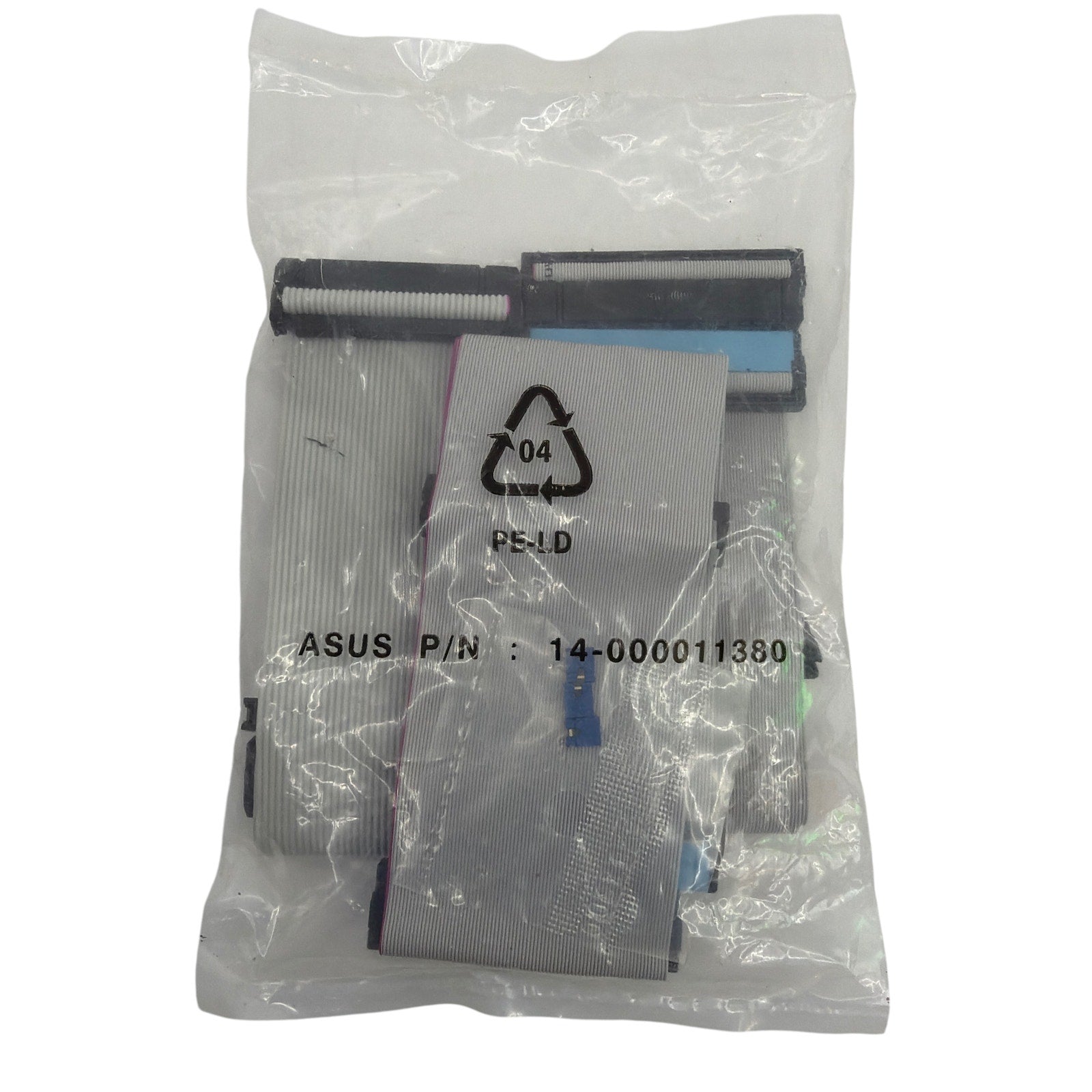 ASUS OEM IDE (PATA) ribbon cable bundle, labeled P/N 14-000011380. Appears unused and still sealed in the original plastic bag; packaging shows normal storage wear. Includes the cables shown in the photos only; please verify connector types/lengths by the pictures.