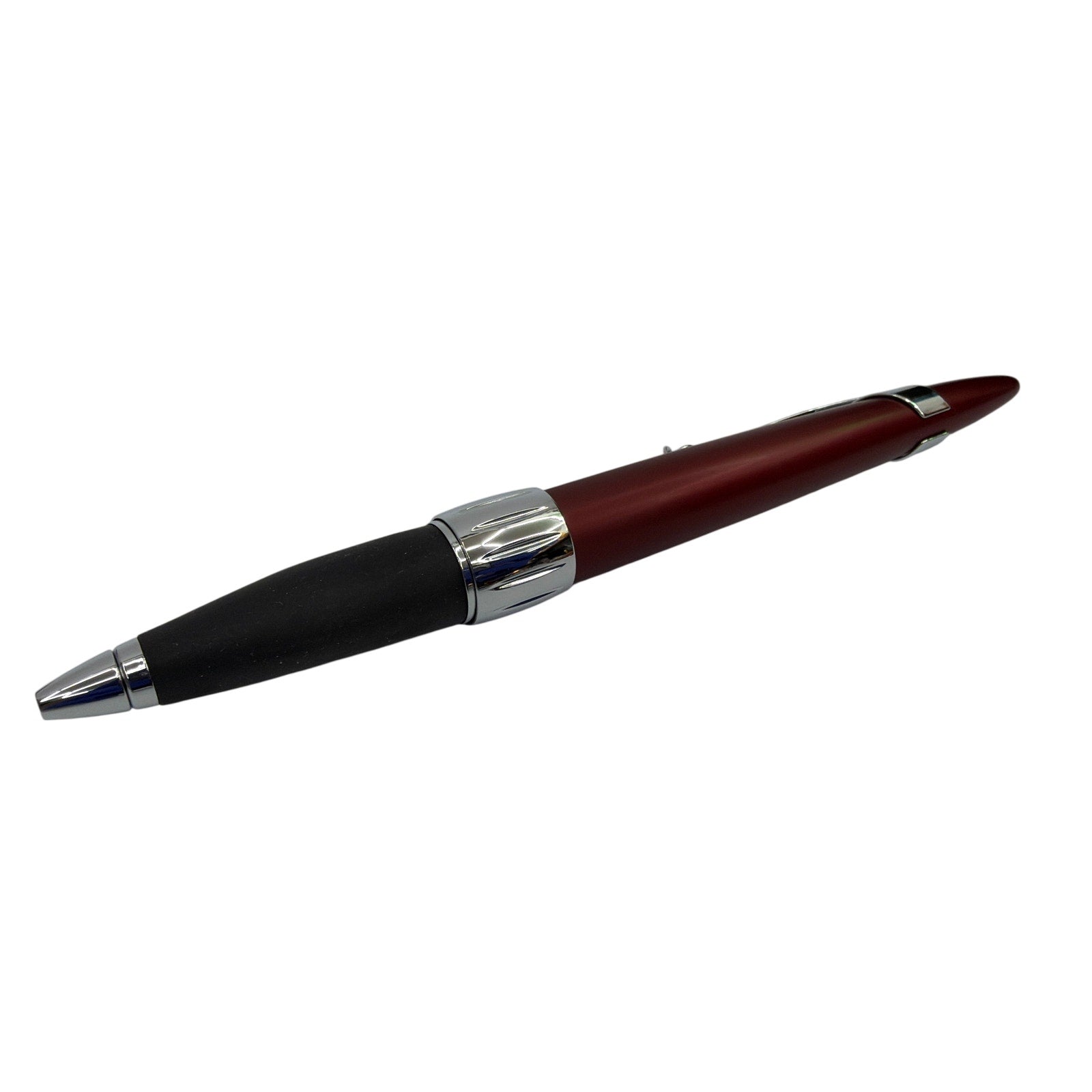 Cross Morph ballpoint pen in burgundy red with a black grip and chrome trim. Tested working and writes as shown; ink level may vary. Includes the pen and the retail clamshell packaging shown; packaging has scuffs/creases and may have sticker residue. Pen shows light cosmetic wear from handling.