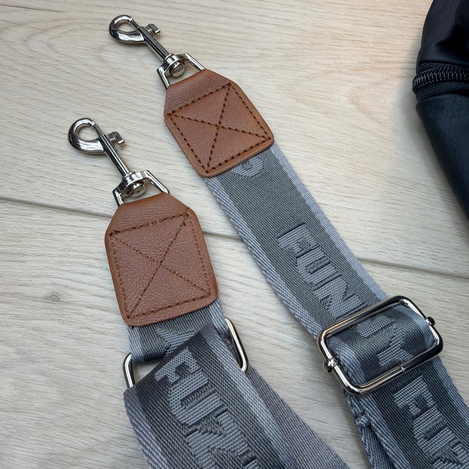 FunnyFuzzy Faux Leather Dog Car Seat Booster Bed with Straps Black/Gray