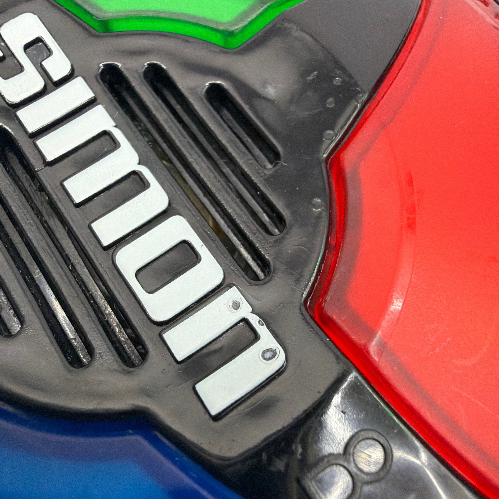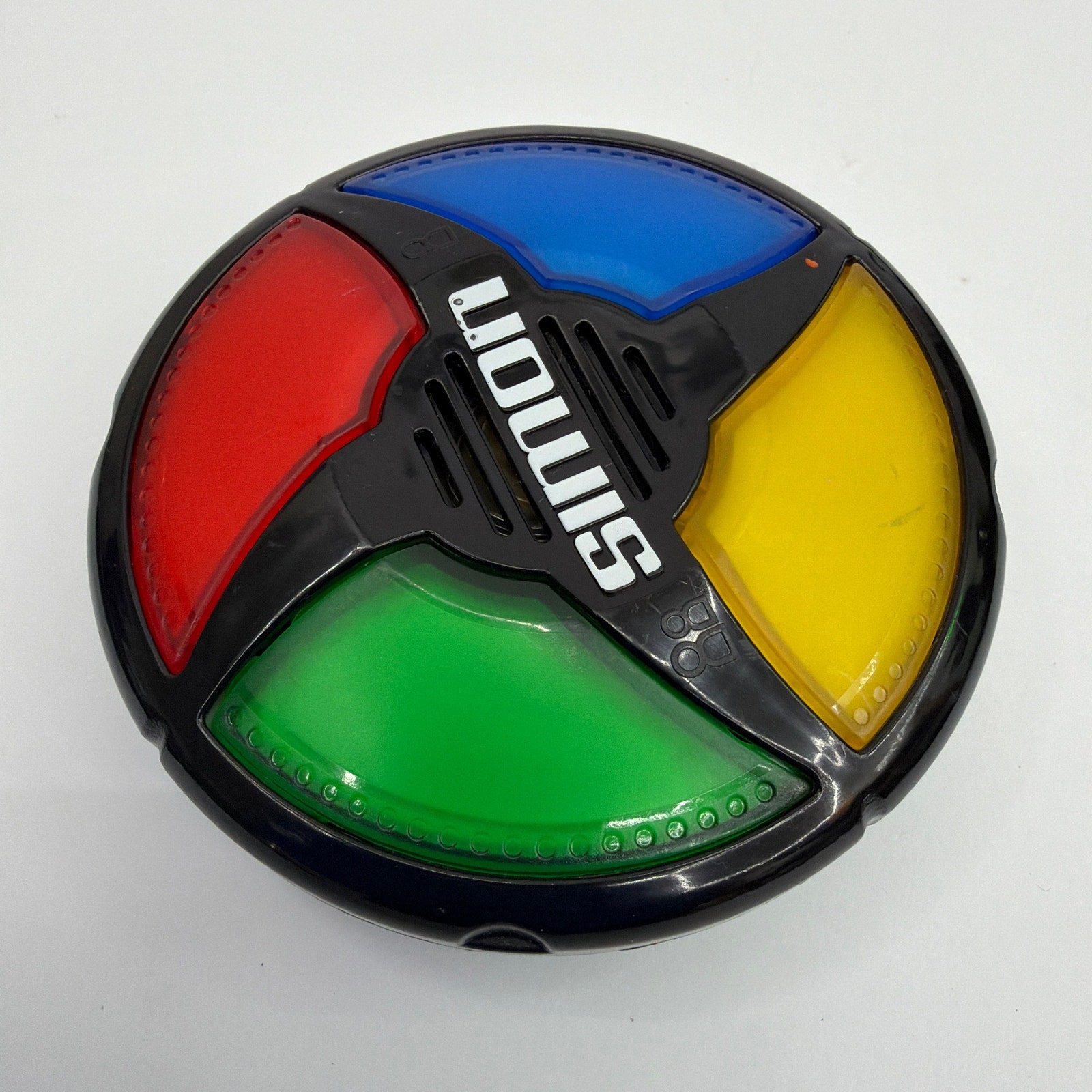 Hasbro Simon handheld electronic memory game (2013). Tested working. Pre-owned with visible surface scuffs/scratches and small marks on the plastic and colored panels. Includes the game unit only; batteries (2x AA) are not included.