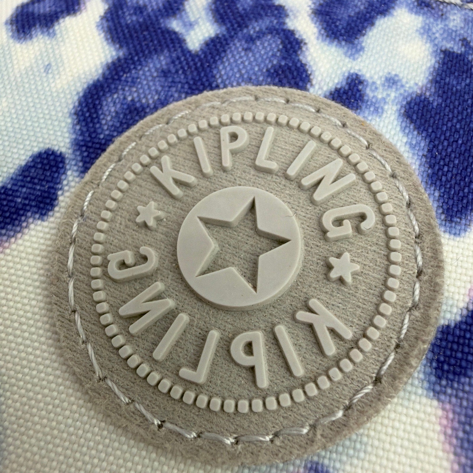 Kipling Small Blue White Print Crossbody Bag With Monkey Keychain