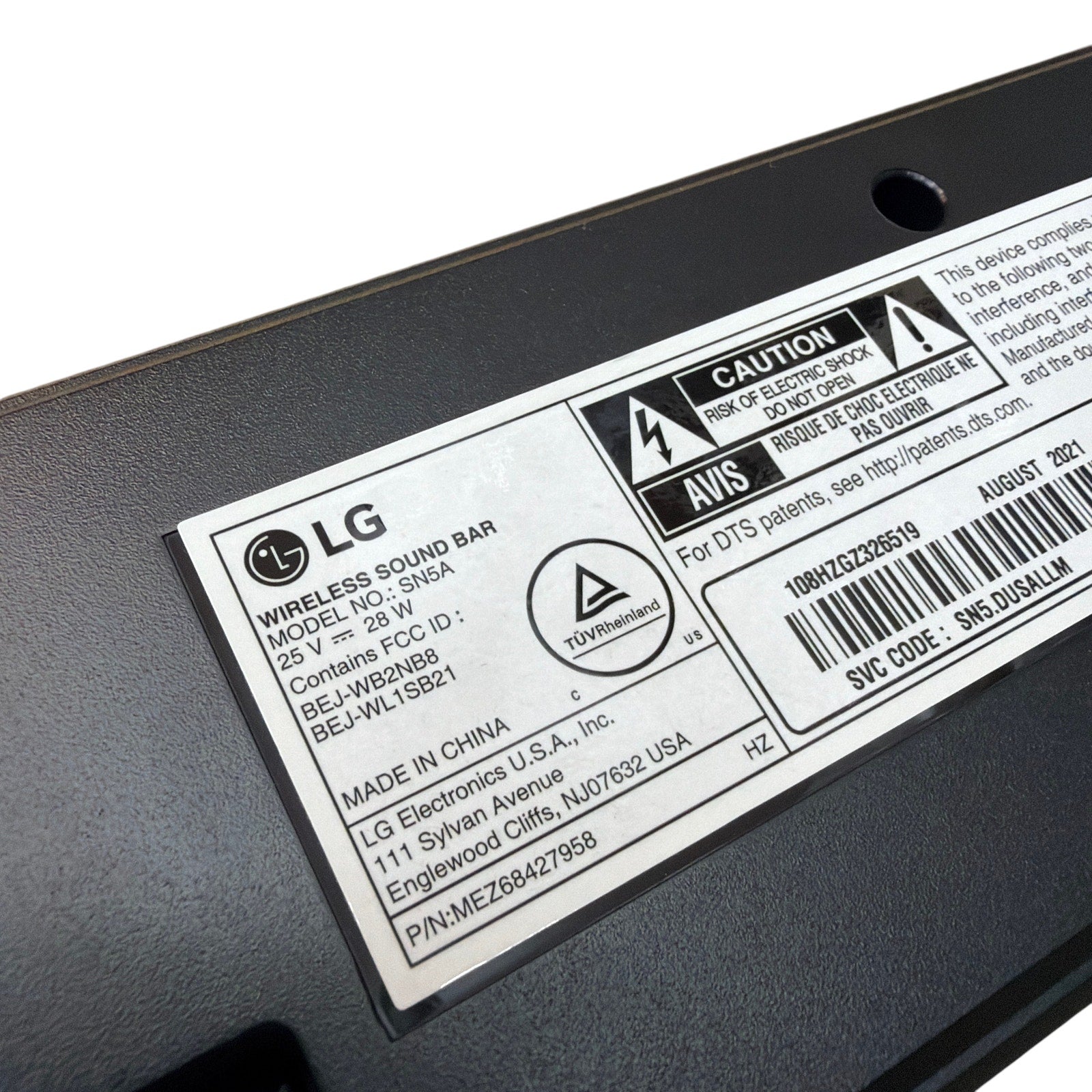 LG SN5A Wireless Soundbar with Subwoofer SPN5BM-W Remote and Power Cords