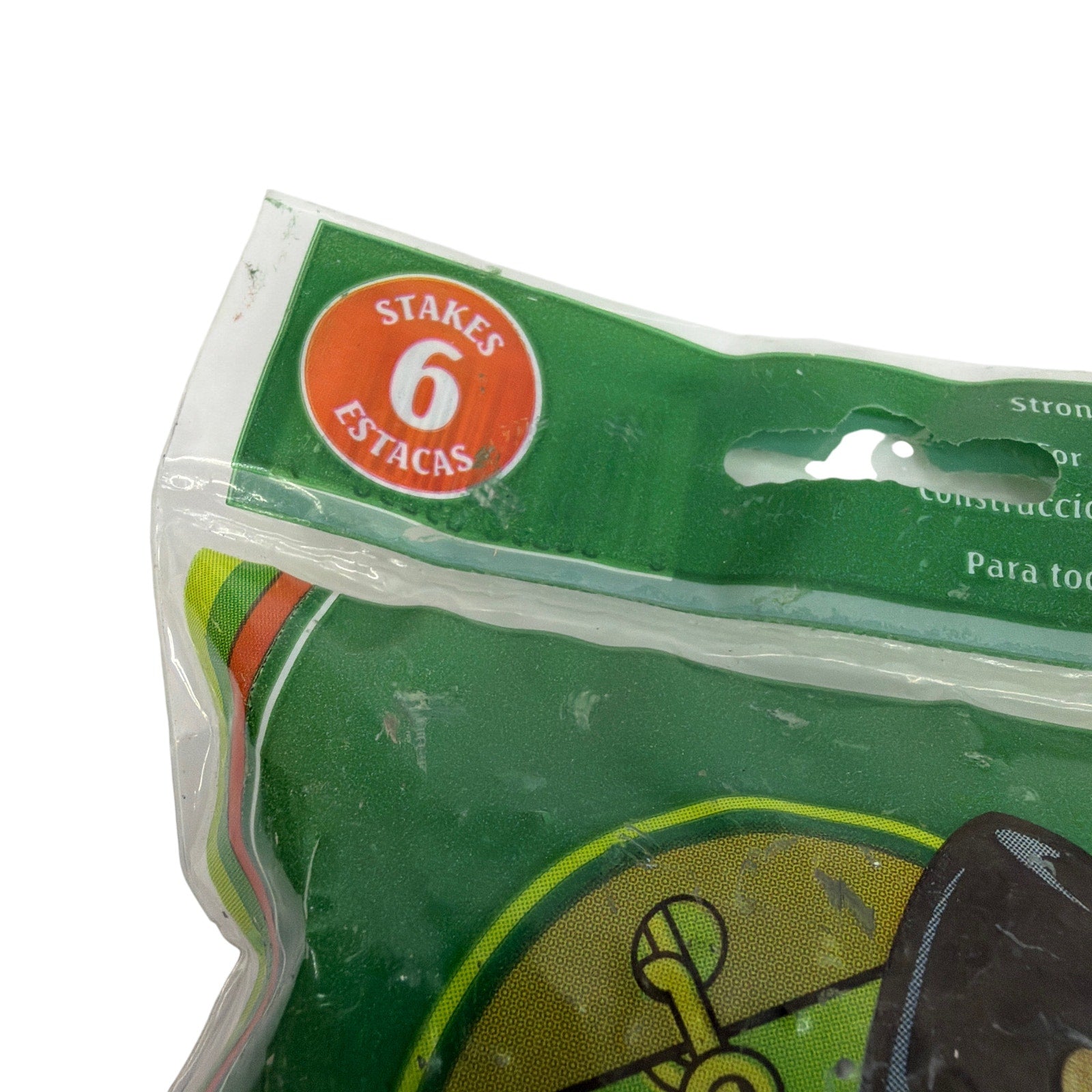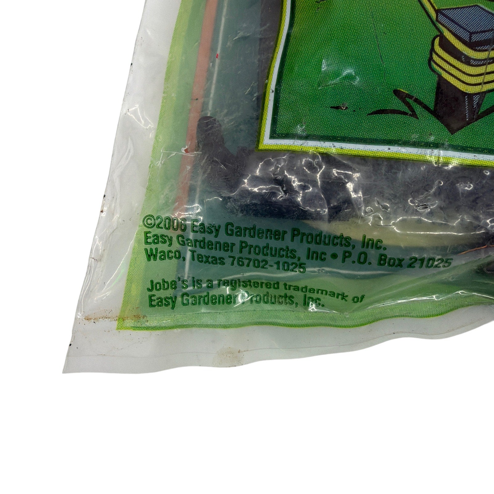 Lot includes three unopened packages of Jobe’s Tree Care Products Large Stakes, model BA-5250P, each containing six 9-inch (23 cm) plastic stakes made in the USA. Packaging indicates they are designed for holding fencing, canvas, or rope tight to the ground. The stakes inside appear unused, while the outer plastic bags show noticeable shelf and storage wear such as scuffs, light discoloration, and surface marks. Dated 2006 on the packaging and guaranteed to be fully functional. Please review photos for details on package wear.