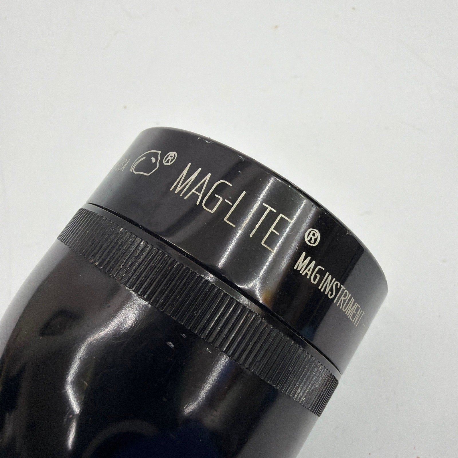 Mag-Lite (Mag Instrument) aluminum flashlight in black finish. Tested working and lights up as shown. Includes a spare bulb (stored in the tailcap). Pre-owned with light-to-moderate cosmetic wear such as scuffs and small marks from normal use; made in U.S.A.