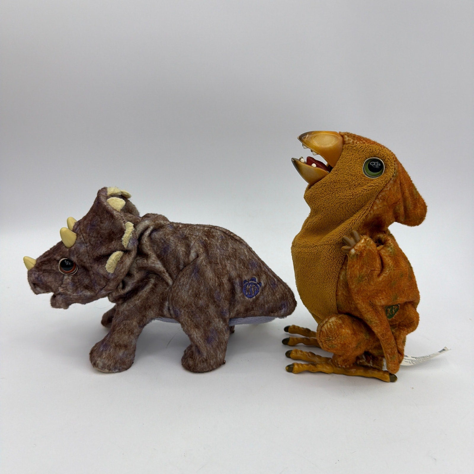 Includes 2 Playskool/Hasbro Kota & Pals Hatchlings electronic plush dinosaurs (Triceratops Asst. 08847/08846 and Pterodactyl Asst. 08864/08843). Both have been tested and are working. Pre-owned with noticeable handling wear; fabric may have light staining/marks and the plastic parts may show scuffs. Includes only what is shown in the photos, including the battery compartment pieces shown.