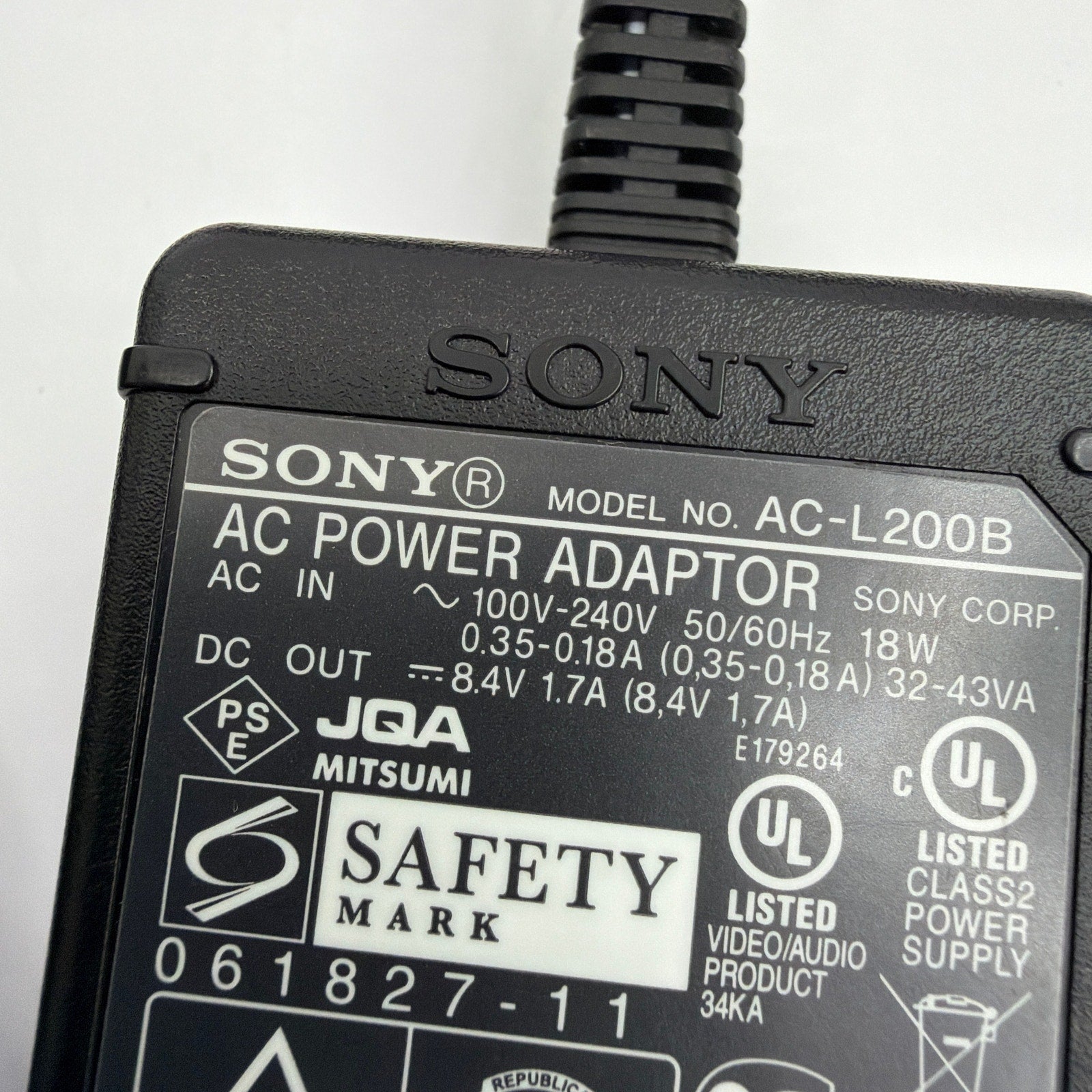 Sony AC power adaptor model AC-L200B. Tested working. Includes the adaptor and power cord shown; no other accessories are included. Pre-owned with light cosmetic wear that may include small scuffs from normal use.