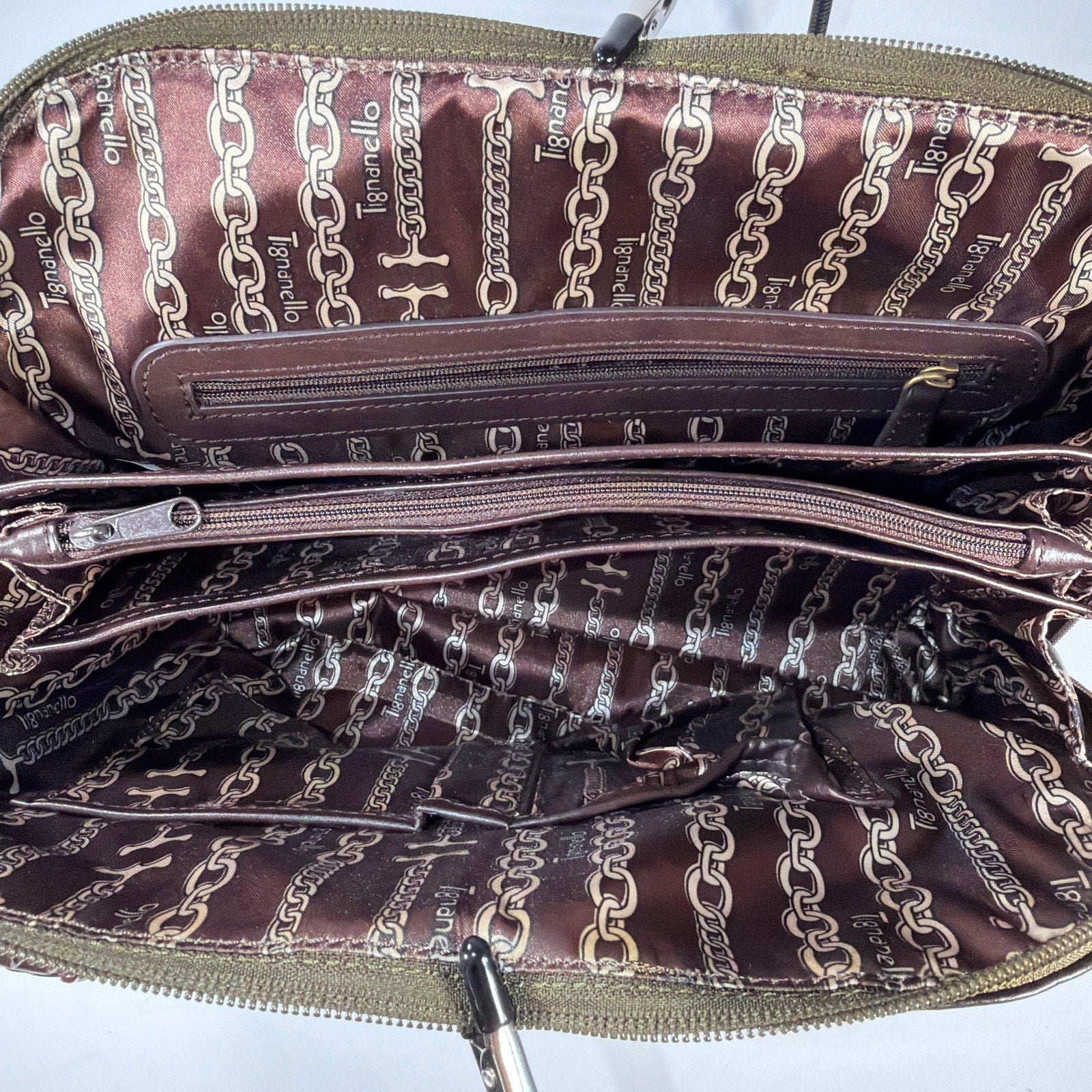 Tignanello Two-Tone Leather Satchel Handbag Brown 14x5x9